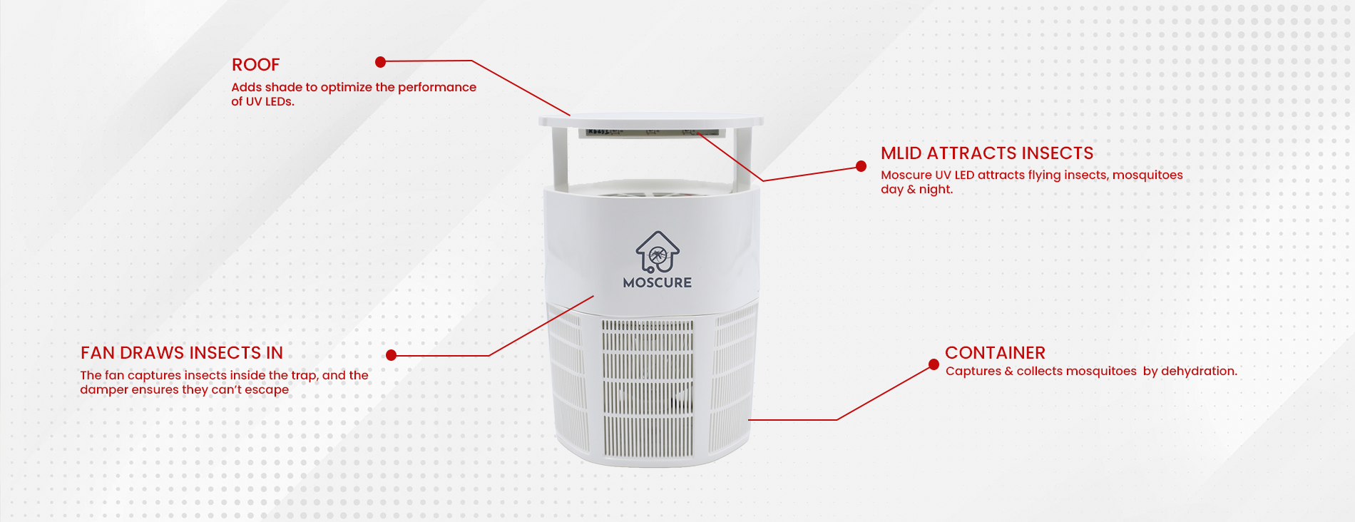 Enjoy your evenings outdoors without worrying about mosquitoes and flying insects with the Moscure Mosquito & Insect Trap. Using advanced , it effectively attracts and traps mosquitoes, flies, moths, fruit flies, drain flies, and other harmful pests.